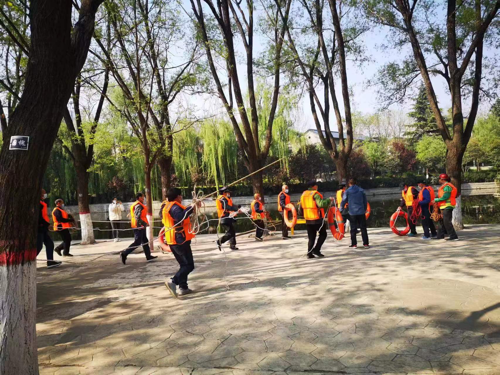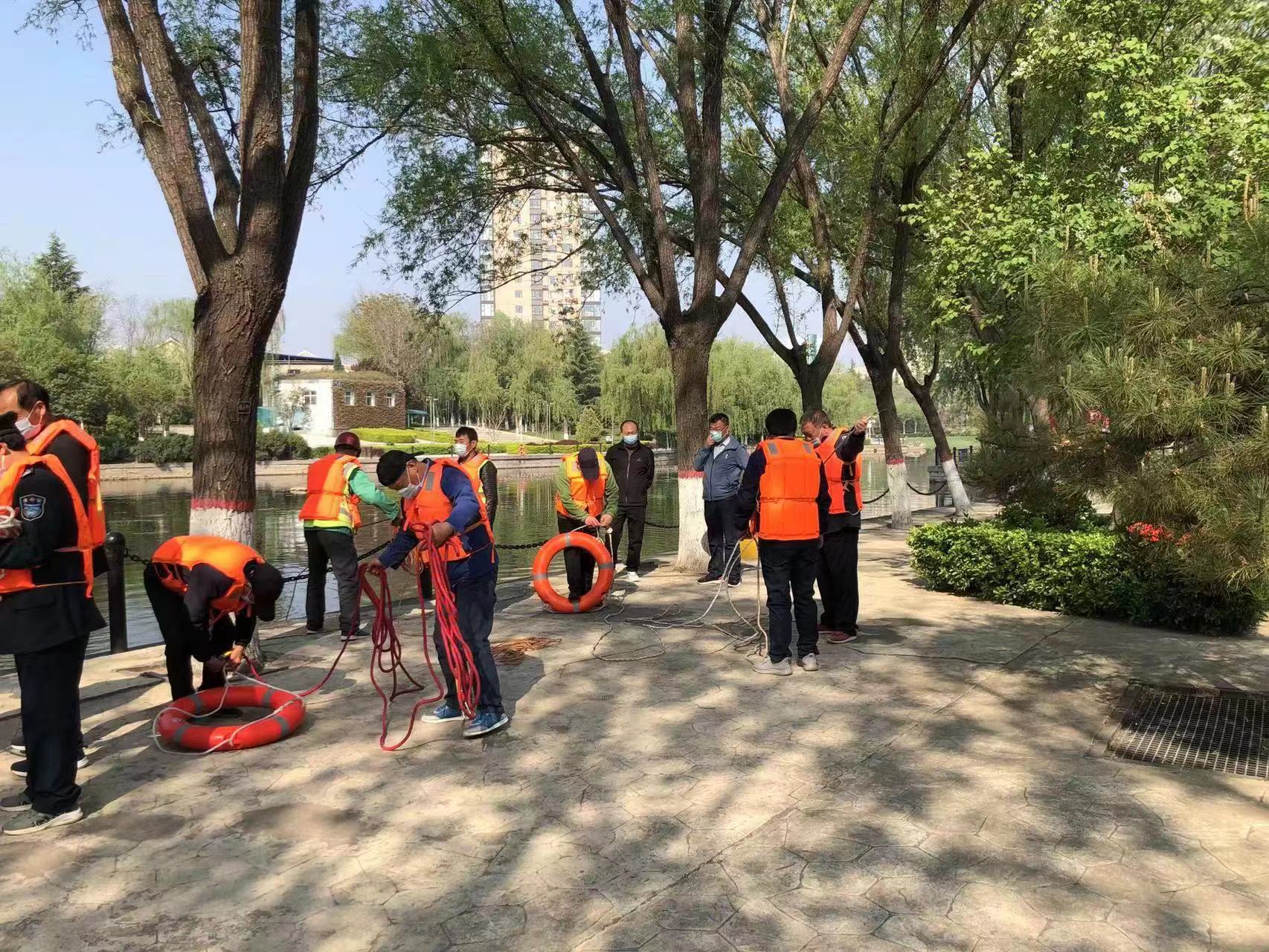 為進一步強化應(yīng)急預案保障措施的落實,提高管理人員和員工防汛搶險應(yīng)急反應(yīng)和處置能力,教育管理人員及員工如何正確、準確應(yīng)對極端天氣,迅速處理防汛突發(fā)事件,4月18日上午,合眾力公司景觀河道項目點在西秀園組織開展防汛搶險應(yīng)急演練。