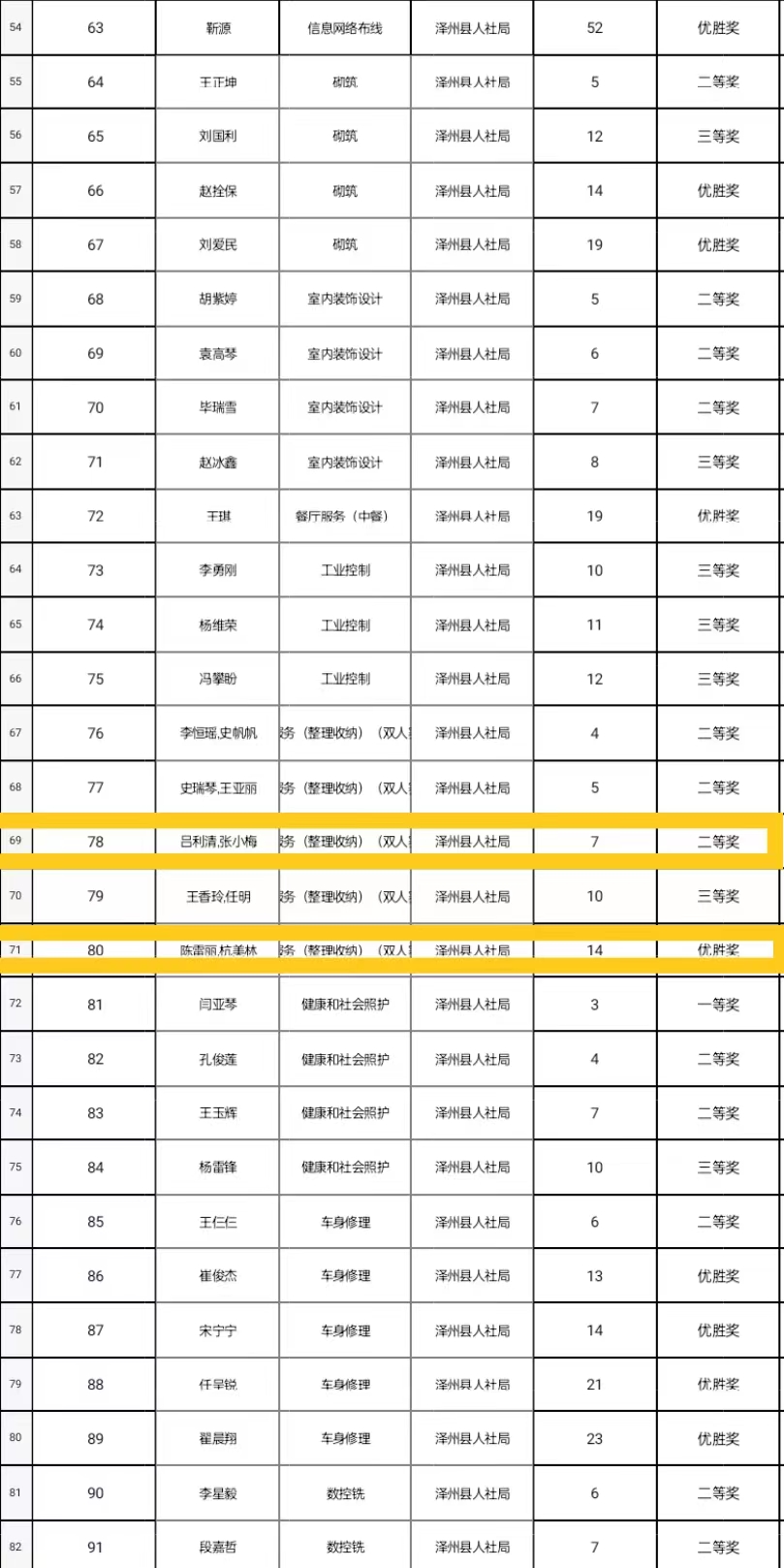 近日,從澤州縣人社局傳來好消息,公司呂利清、張小梅在第三屆晉城職業(yè)技能大賽家政服務(整理收納)項目(雙人賽)中榮獲二等獎,陳雷麗、杭美林在同項目中榮獲優(yōu)勝獎。