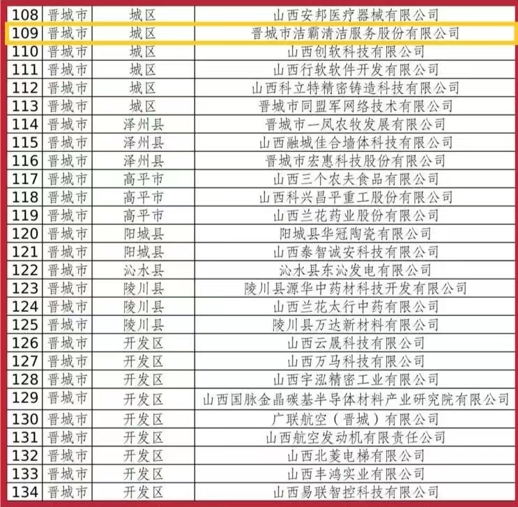 根據(jù)《優(yōu)質(zhì)中小企業(yè)梯度培育管理暫行辦法》(工信部企業(yè)〔2022〕63號)、《關(guān)于印發(fā)〈優(yōu)質(zhì)中小企業(yè)梯度培育管理實(shí)施細(xì)則(暫行)〉的通知》(晉企發(fā)〔2022〕78號)等文件精神,經(jīng)企業(yè)自評申報(bào)、各市審核評價、省級匯總等程序,現(xiàn)公布山西華清新材料科技有限公司等188戶企業(yè)為2023年度第四批創(chuàng)新型中小企業(yè),有效期三年(2023年12月5日至2026年12月4日)。